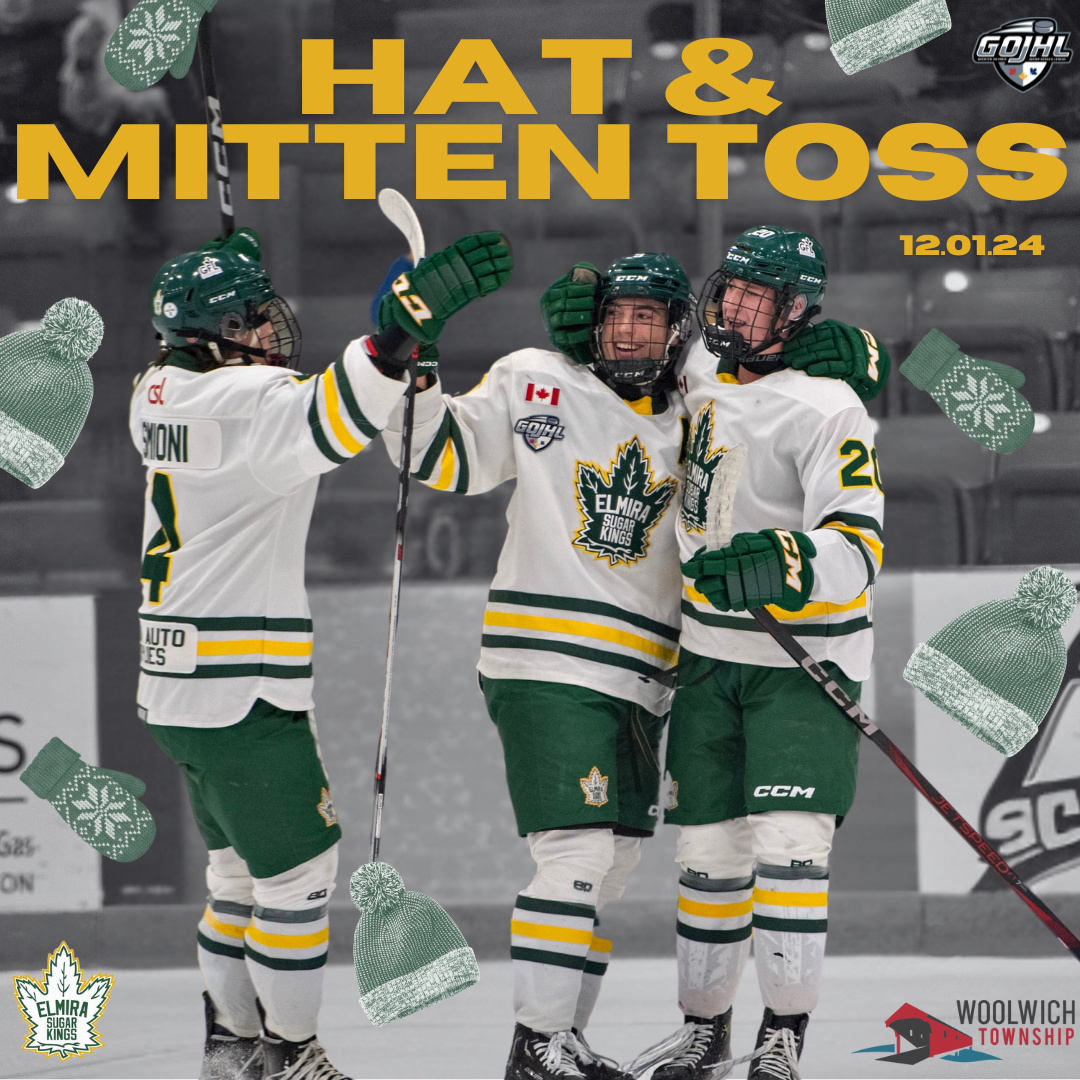 Join us this Sunday December 1st for our game vs the St.Thomas Stars. We will be having our annual hat & mitten toss in support of Woolwich Community Services. Bring your new hat & mitts in a bag and toss them on the ice when the Kings score their 1st goal. We hope to see you there!
